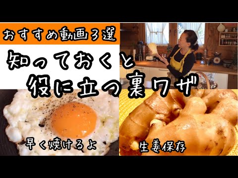 【便利な裏ワザ3選】すぐ焼ける激ウマ目玉焼き|生姜の保存|きのこの保存|料理教室|元気ママキッチン|役に立つ裏技