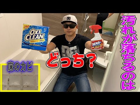 お風呂の床の黒ずみやカビはカビキラーとオキシクリーンはどっちが綺麗になるか?【検証動画】